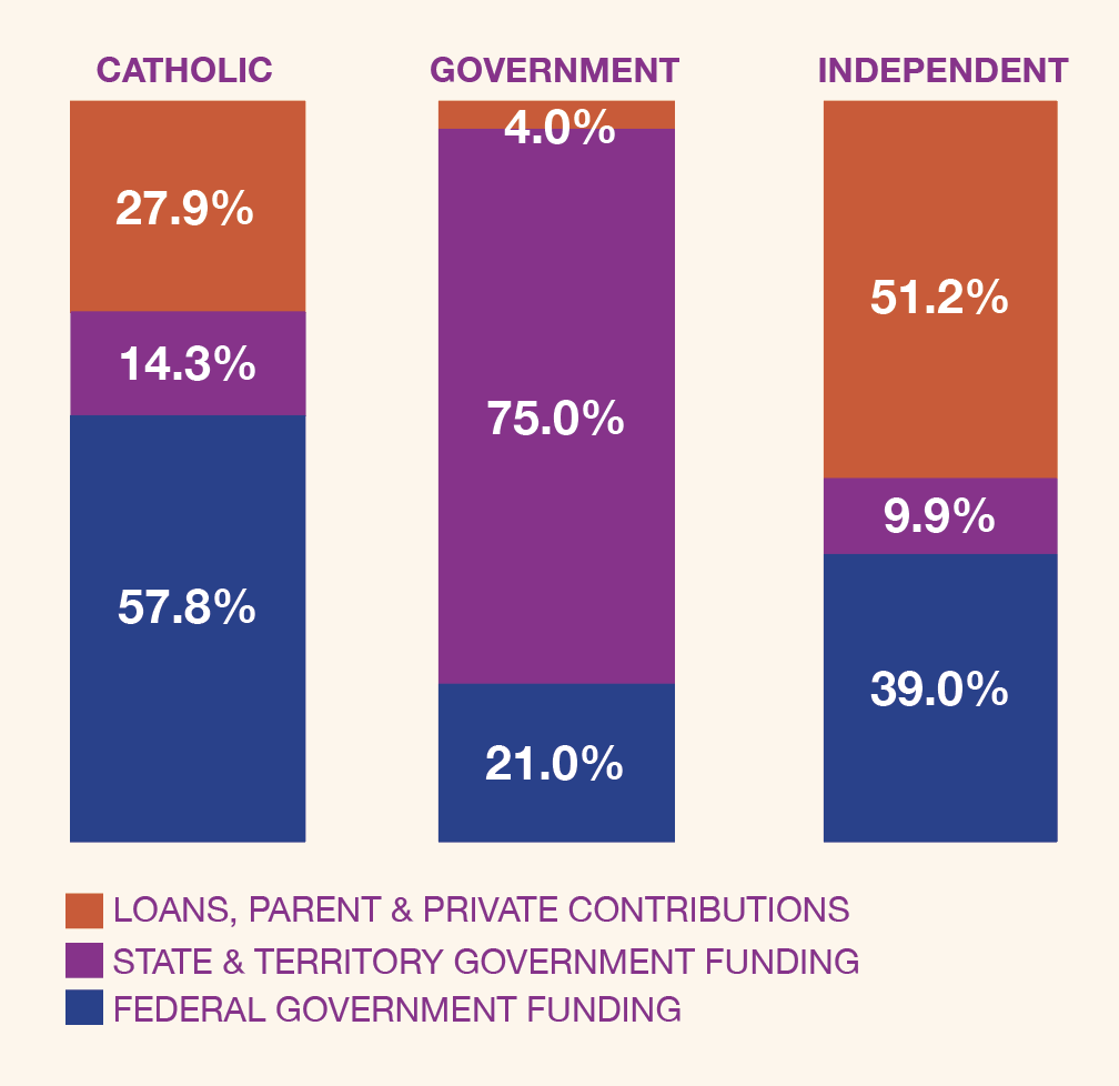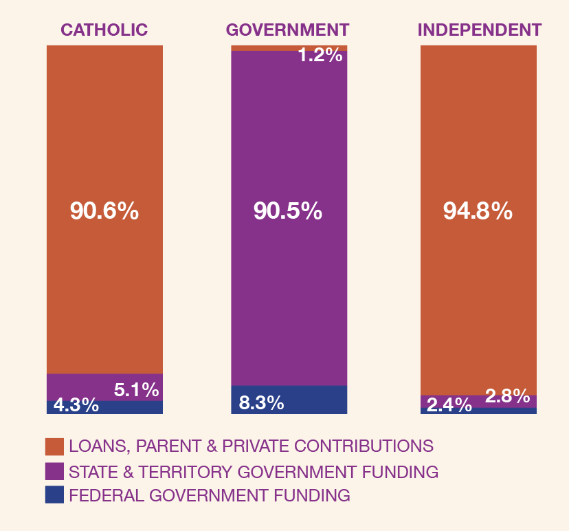 Non-government schools have reduced access to capital and infrastructure funding and rely on private income – loans, parent and private contributions.